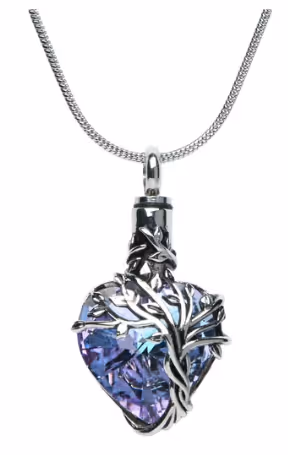 Iridescent Cut Glass Heart with Tree of Life Penant