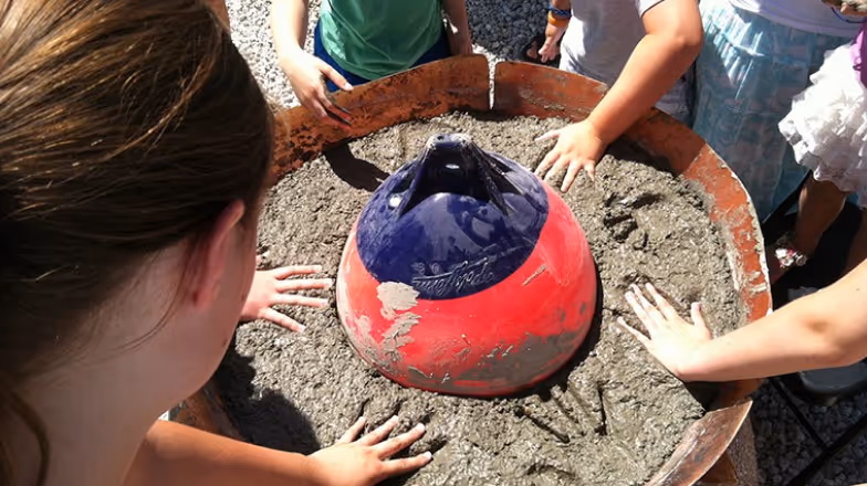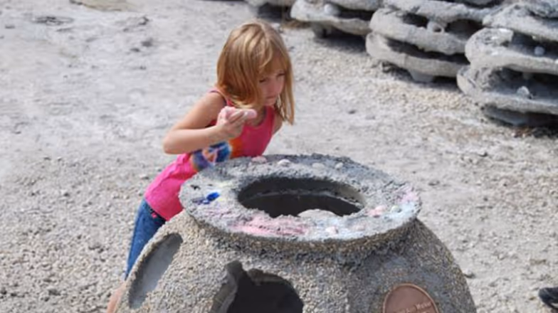 Families may help mix a small “pearl” of concrete with cremated remains, set it inside the reef form, and personalize the top ring with handprints, messages, and eco-safe mementos (seashells and materials provided). Participation is encouraged but not required.